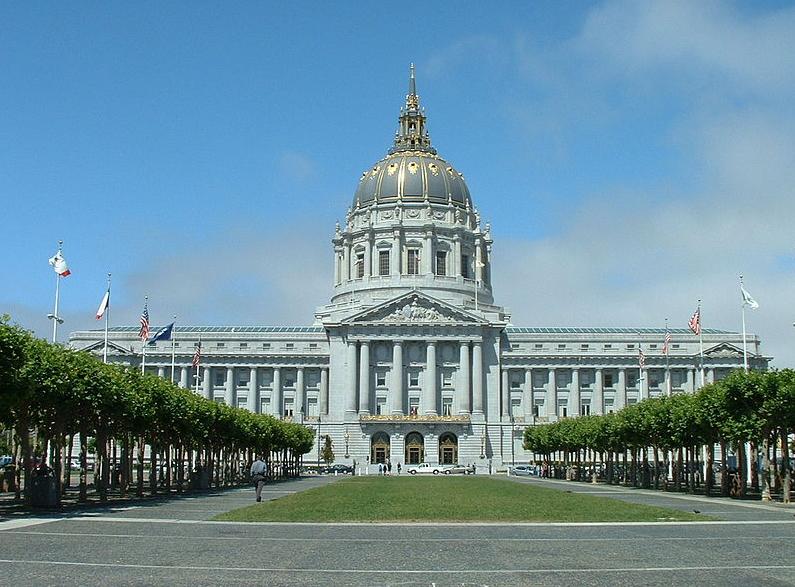 【市政厅】(外观)是学院派建筑风格,兴建于1913年到1915年的城市美化运动中,其巨大的穹顶名列世界第5位。